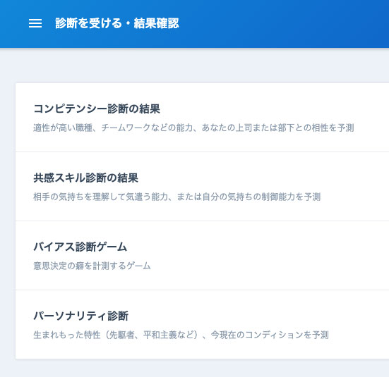 - パーソナリティ診断